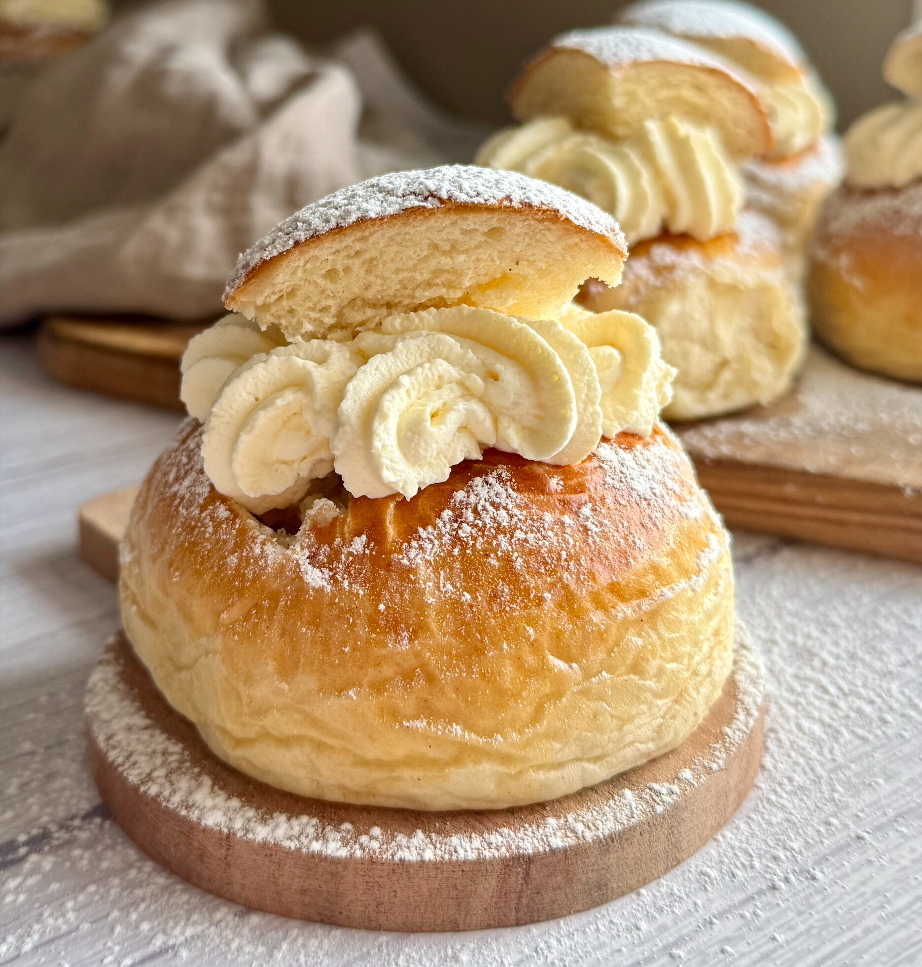 Ingenting slår duften av nystekte boller, og spesielt til fastelavn. Nystekte og med mandel – og kremfyll blir de uimotståelige. Disse bollene er luftige, myke, saftige og deigen er lett å jobbe med. Ved fastelaven feirer vi innledningen til den 40 dager lange fasten.