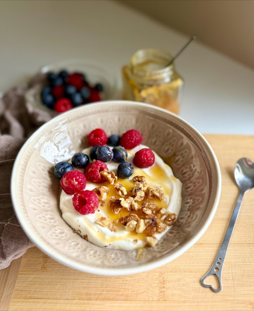 Slik lager du yoghurt filtrert gjennom et kaffefilter med Røros Yoghurt naturell. Yoghurten får en tjukk konsistens som kan brukes som f.eks smøreost, i desserter eller grilltilbehør (krydret), lage tzatsiki eller på tapasbordet. Mulighetene er mange. Her får du tips til to måter å bruke den hengte yoghurten på.