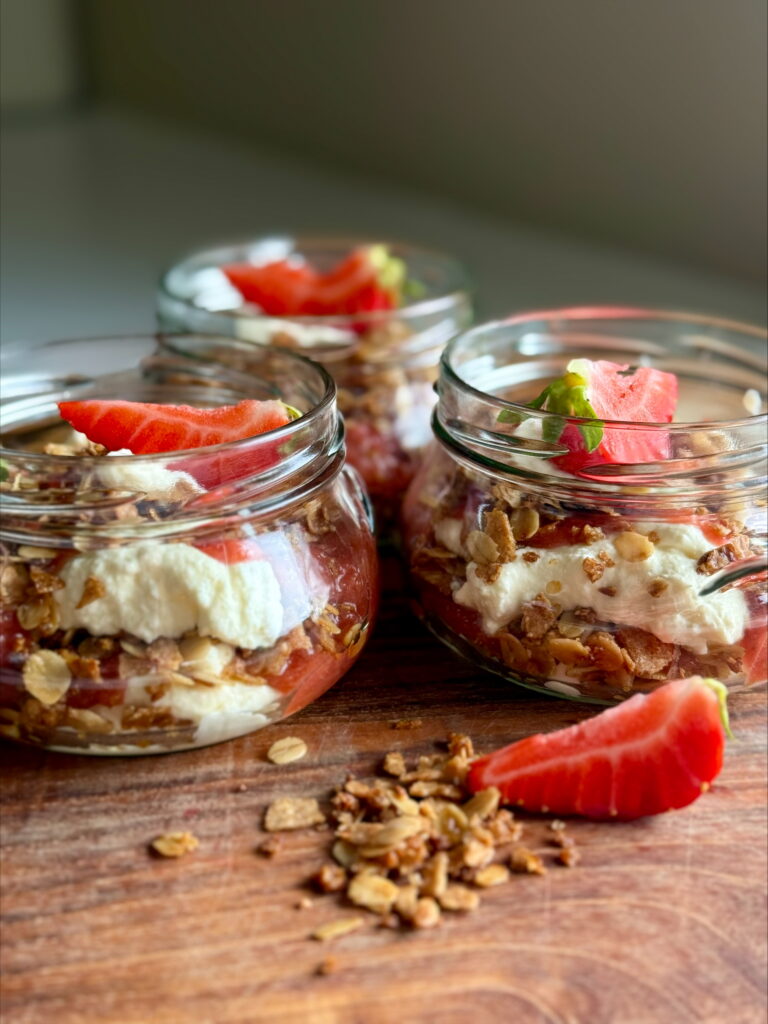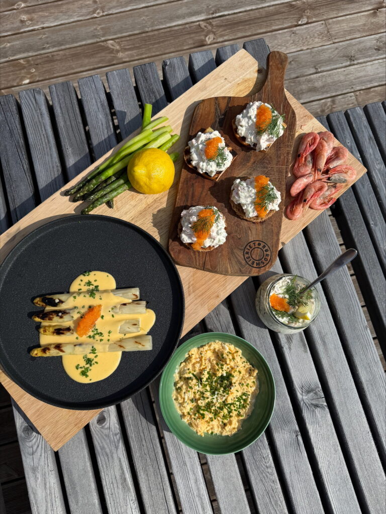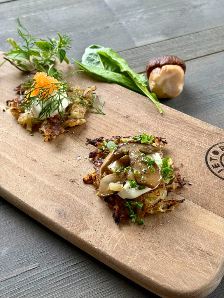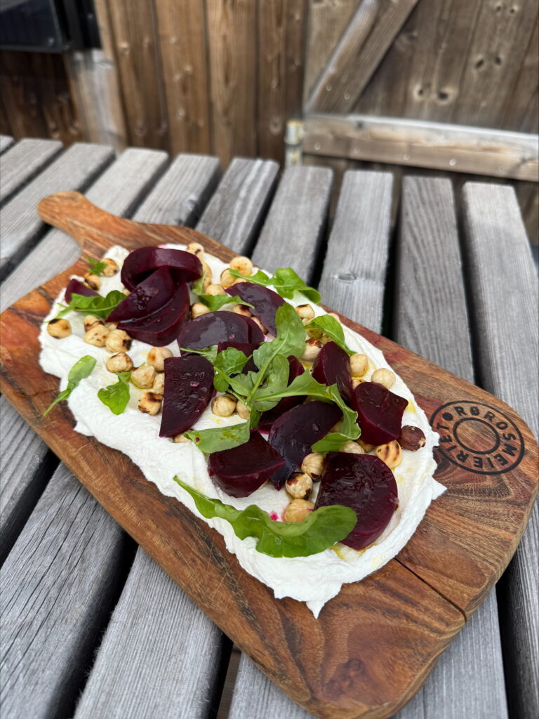 Smakfull skjørostkrem toppet med rødbeter og hasselnøtter
