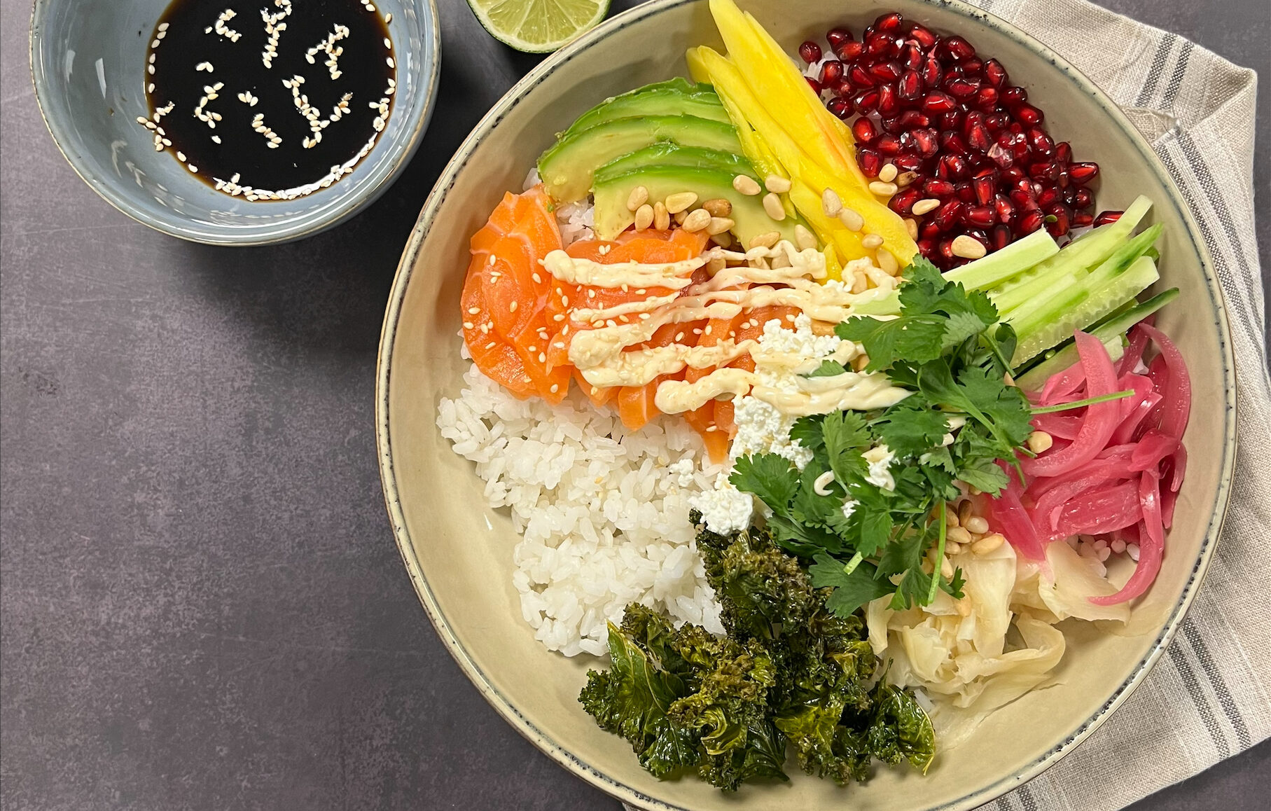 Poke Bowl kan varieres i det uendelige og er en sunn og god middagsrett som både store og små kan like. Topp retten med skjørost for ekstra proteiner, smak og næring.