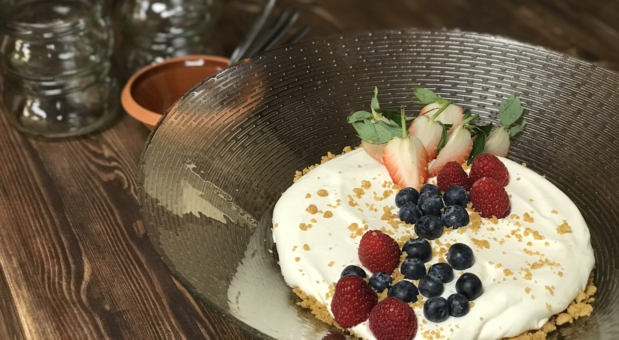 Denne raske ostekaka smaker utrolig godt og er kjapp å lage, den trenger ikke stå i kjøleskap i mange timer eller over natten. Perfekt å serevere til gjester. Denne kan fort bli populær og toppingen kan varieres etter ønske.