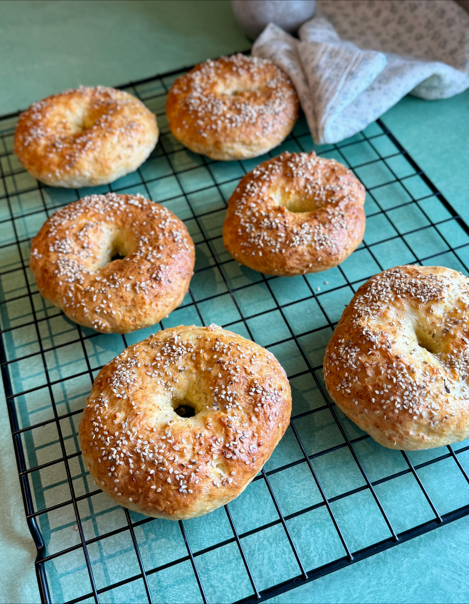 Kaker og bakst 20-40 min Enkel Raske og saftige bagels 0 kommentarer Lagre oppskrift Enkle og raske proteinrike bagels uten gjær og heving. Disse er helt supre å lage opp mange av å ha i fryseren. Slik gjør du Ha skjørosten og yoghurten i en bolle og stavmiks til en jevn masse. Tilsett egg, mel, bakepulver og salt og rør godt sammen. Strø litt mel på kjøkkenbenken og del deigen i 6 like emner. Form de med hendene til bagels ved å lage en litt flat rund bolle som du så lager et hull i midten av. Pensle med egg eller melk og strø på litt sesam- og linfrø. Stek på 200 grader i ca. 25 minutter. Hva synes du om denne oppskriften? Submit Rating / 5. Antall stemmer Logg inn for å vurdere denne oppskriften. Kommentarer Avbryt svarLogg inn for å legge inn en kommentar. Produkter brukt i denne oppskriften Alle produkter Økologisk Skjørost fra Røros-traktene Se flere fristende oppskrifter Alle oppskrifter Bakt ostekake med Røros Yoghurt Fyldig Fortgjort ostekake Saftig banankake uten egg