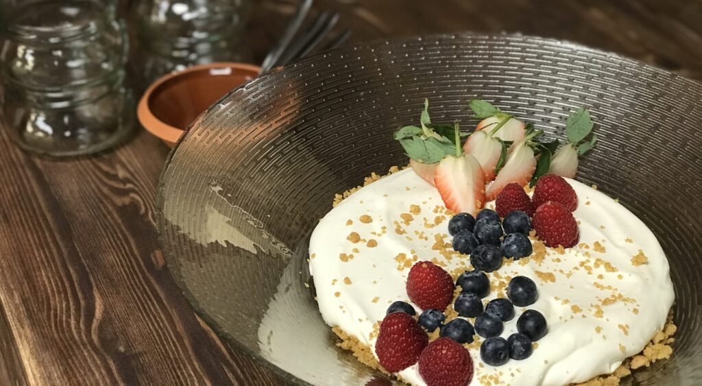 Tjukkmjølkspannacotta med lune bær. Foto: Geir Foden.