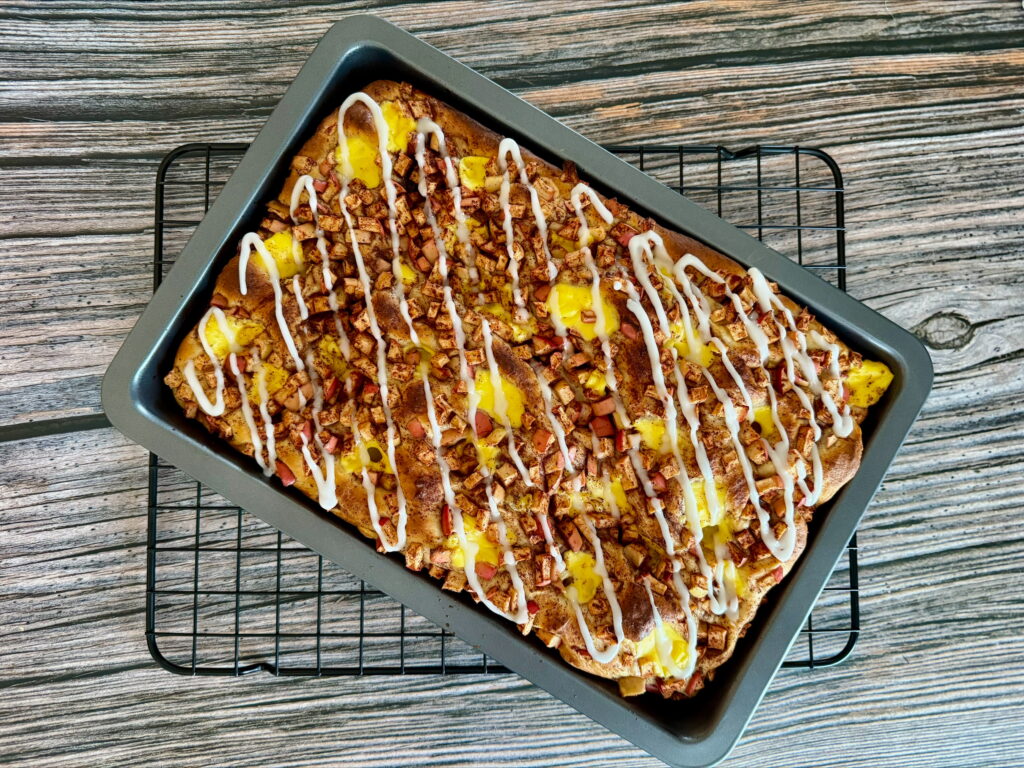 Bollefocaccia med vaniljekrem og eplebiter