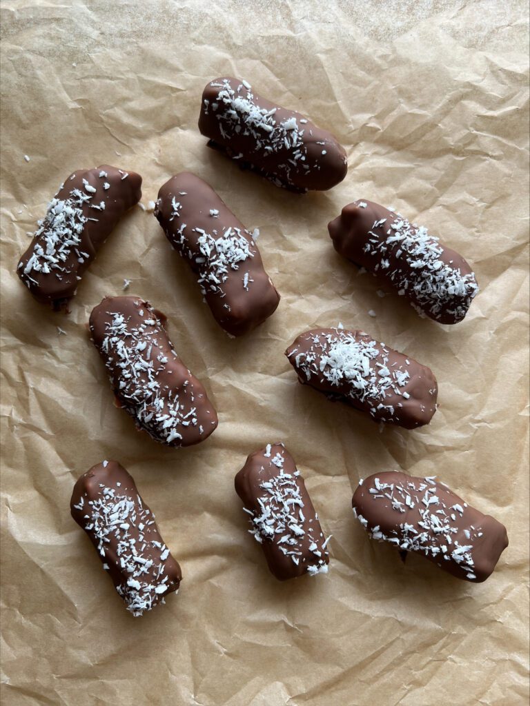 Fem eplemuffins og fire båter med epler, dandert pent på en tallerken