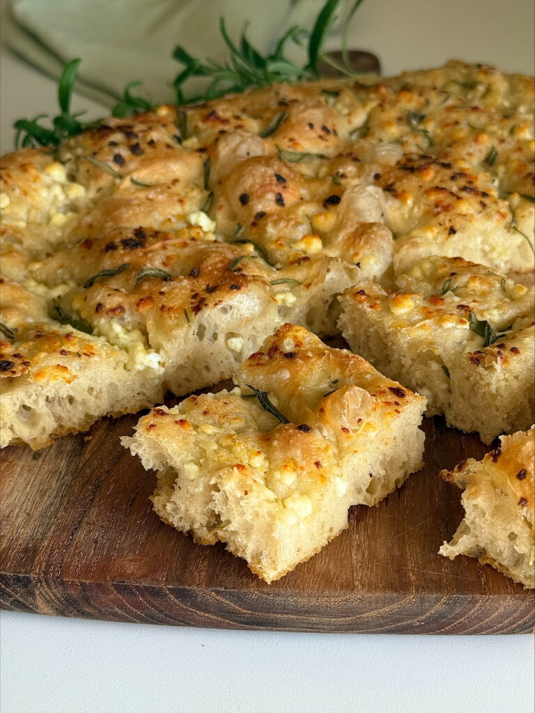 Luftig og sprø focaccia toppet med skjørost