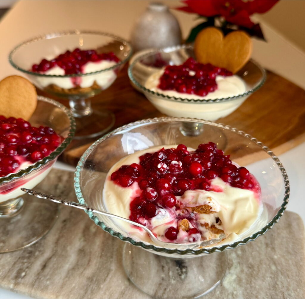 Dette er en julete dessert med skikkelig gode smakskombinasjoner. Den er rask å lage, og kommer garantert til å imponere. Har du barn som liker tyttebær, kommer de til å elske denne. Ekstra godt blir det med selvplukkede tyttebær. Perfekt om du har igjen rester av pepperkaker, tyttebær og rømme etter julens middager.