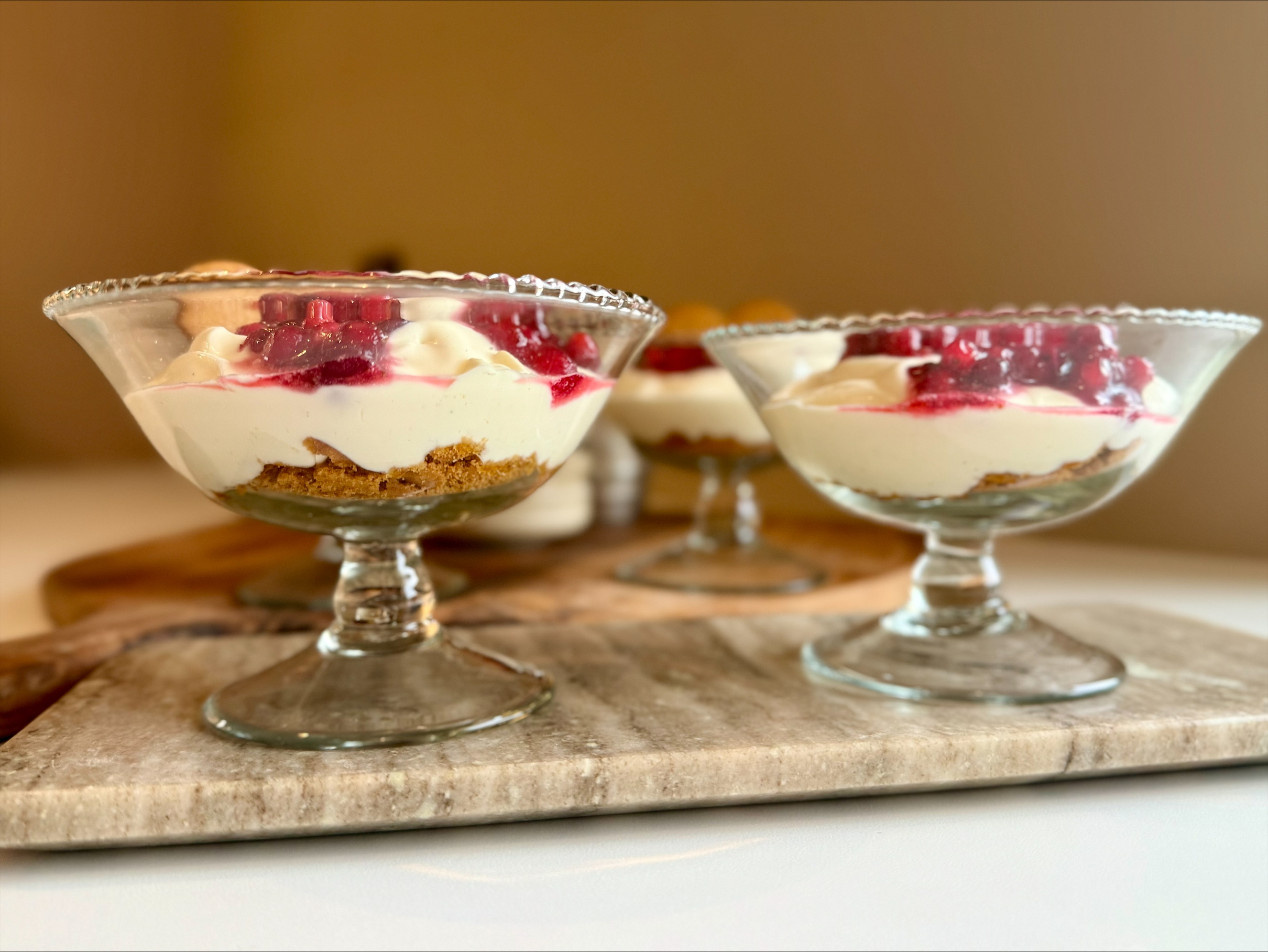 Dette er en julete dessert med skikkelig gode smakskombinasjoner. Den er rask å lage, og kommer garantert til å imponere. Har du barn som liker tyttebær, kommer de til å elske denne. Ekstra godt blir det med selvplukkede tyttebær. Perfekt om du har igjen rester av pepperkaker, tyttebær og rømme etter julens middager.